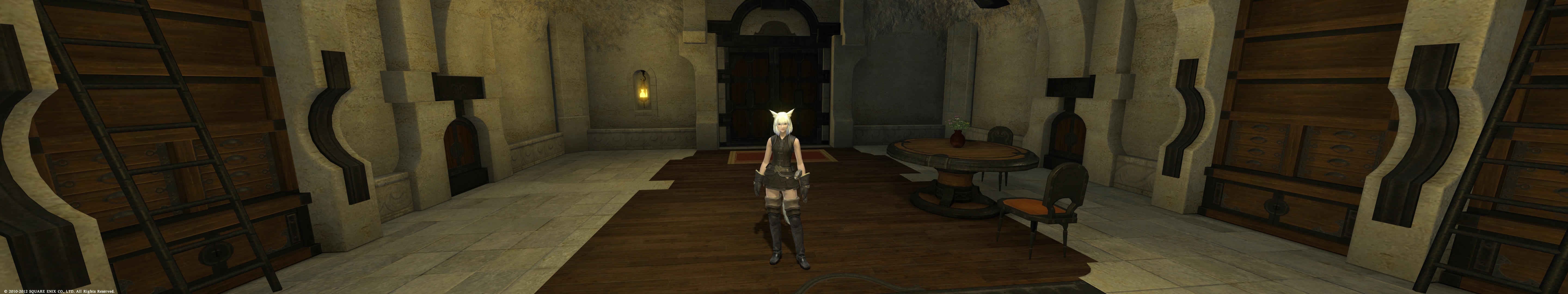 今日ようやく三台目のモニターが届きまして夜勤明けにもかかわらず、 設置場所に悩み、配線の取り回しに悩みそして挙句の果てにはHDMI変換が使えネェというww 結局DVIx2とDPで何とかなりましたけどもうちょっと長めのケーブルも注文すべきだったヽ(;´Д`)ノ とりあえずSS撮ってみましたw (5760x1080で1.33MBありますので注意して見てくださいww) 奥行き感が半端ないですww ただし、ちょと欠点が。 確か公式フォーラムにも書いてあったんですが、 FF XIV Configで『全体の描画品質』が9と10(最高品質)が選択出来ないんですよねぇw いや、正確には選択出来るんですけどゲームが起動しません(ノω`*)ァチャー まぁで標準品質でも別に気になら・・・いややっぱ気になるww とりあえず、このSSの設定は『全体の描画品質』以外は全て最高にしてます。 ただし『被写界深度』はOFFにしてます(*>ω<*) 2012.06.15 Fri 09:34:26 私が考えた・・・私なりに考えた事なんですが、ジョブ武器取得クエ。