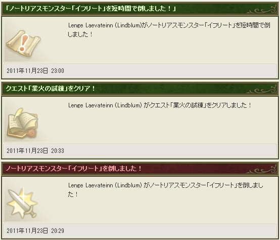 ミンナは今どこで何をしていますか? from Lenge Laevateinn on Vimeo. 2011.11.24 Thu 14:55:37 討伐成功!?