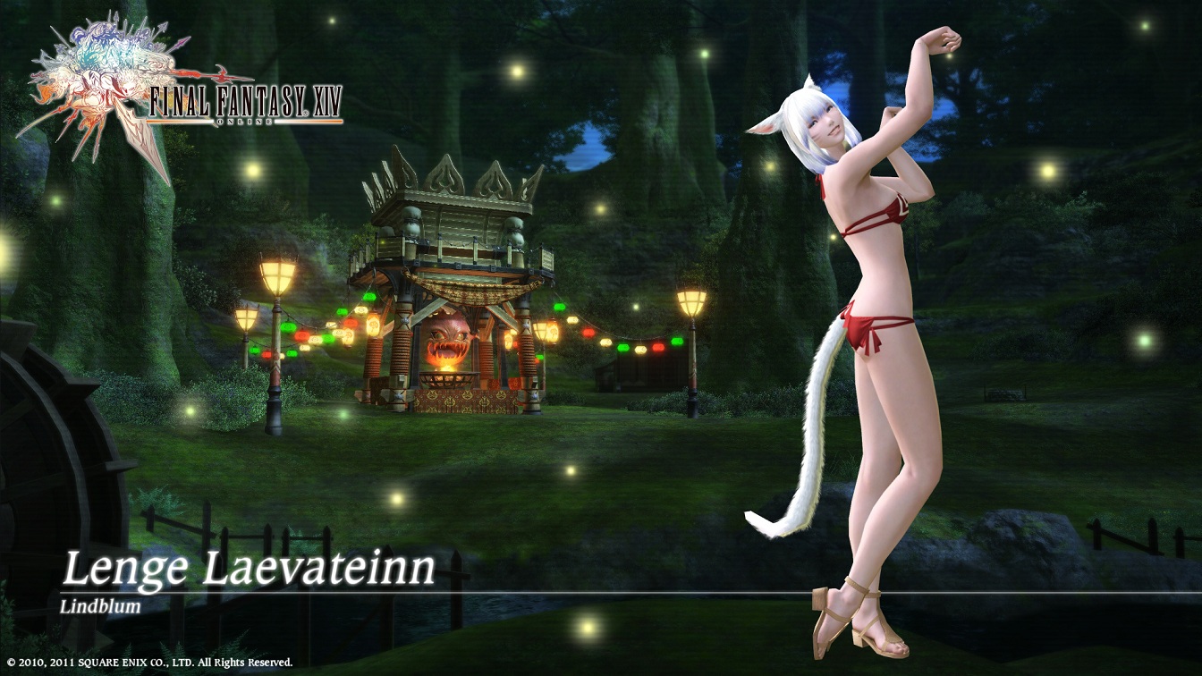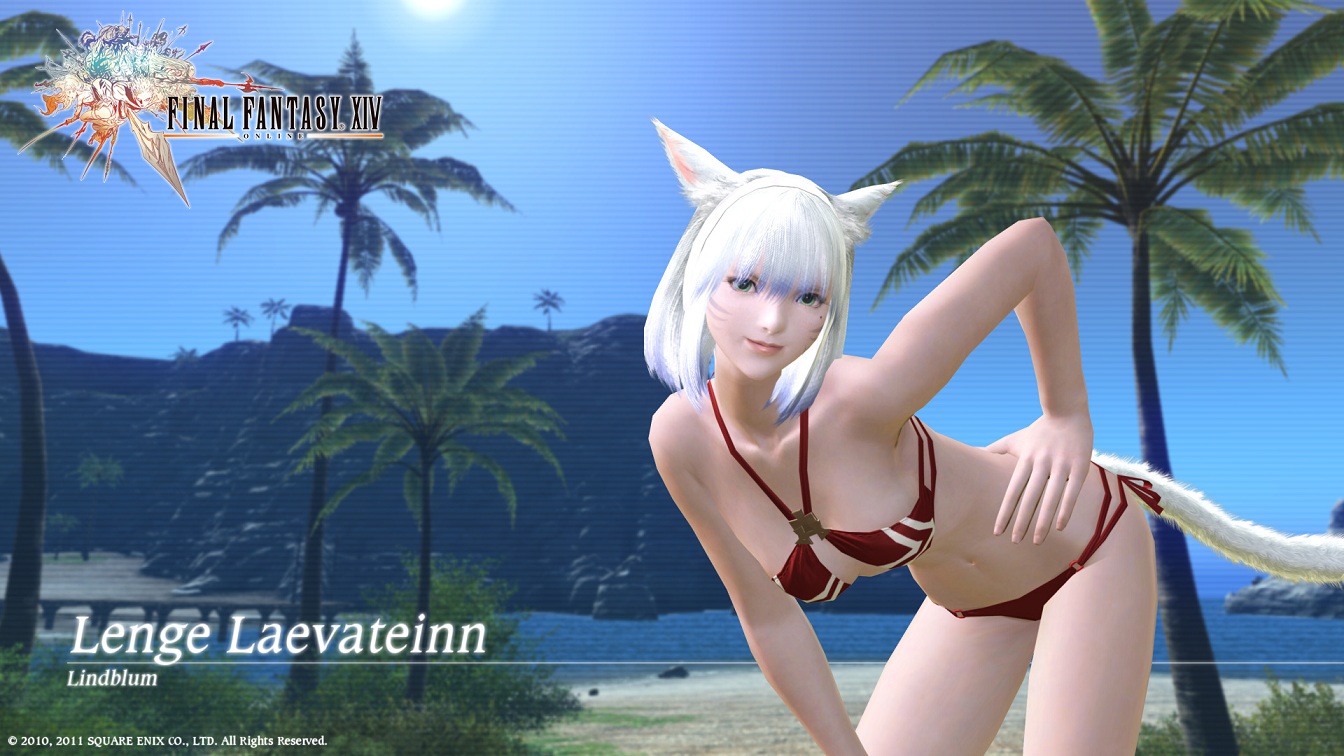 パッチのボリュームも半端なく多いですけど、1.19aへ先送りになるものも~とか言ってましたから 実際どれだけが1.19で実装されるのか・・・マイチョコボだけは先送りしないでもらいたいですなw これですよ、これ! マイチョコボはグランドカンパニーから支給されるものみたいですねw それにレンタルチョコボに飛空艇も実装されるようですね~楽しみ~ヽ(´∀`*)ノワーィヽ(*´∀`)ノワーィ あと、10月中旬予定の季節イベントもこの時に実装予定みたいですね~。 秋といえば・・・なんだ?月見か?ということはまたウサギなのか?w ウサギなら正月にウサギ兜があったから鎧か?籠手?なんだろうww それとも収穫祭みたいなものかな? 他にも蛮神イフリートバトルも実装更にはカンパニー正式入団クエスト、そして攻略型フィールド砦・・・。 ほんと次のパッチは内容が盛りだくさんですね^^ パッチ実装は9月末死守で進行中とのことですので、開発スタッフの皆様頑張って下さい゚ヽ(*´∀`)ノ゚.:。+ PR 2011.08.12 Fri 01:20:20 壁紙つくたw2011.08.11 Thu 23:57:01 祭だ!水着だ!紅蓮祭だ!ということで、水着で自キャラに悩殺されているれんげです。