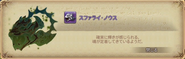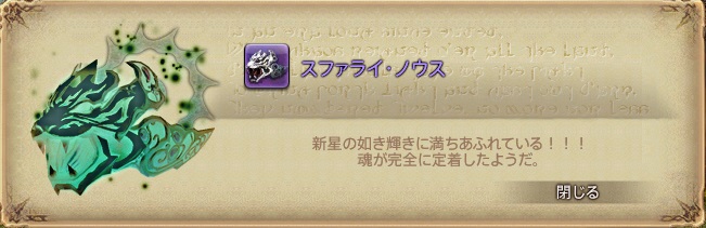 PAGE | 1 2 3 4 5 6 7 8 9 | ADMIN | WRITE 2014.09.29 Mon 19:11:37 ネクサス完成への道-終ということで、残り半分になりまして金曜日(9/26)の深夜から土曜日(9/27)の早朝にかけて真ガル周回してました。 んで、深夜の3時半ごろにまず6段階目にw そしてそこから大体100P分稼いで就寝(`ω´) 起きて一通りの用事を済ませてからはまたひたすら蛮神の周回。 土曜日(9/27)のお昼ごろに7段階目。 ほんで、若干の休憩をちょこちょこと挟みつつその日の18時?19時?ぐらいに8段階目に(`ω´) その後はまた晩御飯やらバハの固定でキャッキャウフフと遊んでその後にまた蛮神周回。 しかし、4層の練習で気力がなくなり早々に就寝ww そして昨日(9/28)の朝10時ごろにやっと9段階目。 で、その日の夕方18~19時ごろだったかな? ついにこの表示がでまして、 さっそくおっさんの所へ行ってノウスを強化! 出来上がりました!スファライ・ネクサス!! どうですか、このドリル感wwww スファライの周りにある輪がすっごい回ってますww そろそろ見た目が変形とかしても良いような気がします。 そしてサブステはというと、 もちろん意思クリ特化型でございます(`ω´) 最初は意思命中もアリかなぁと思ったんですが命中は他の装備で何とかすれば良いし、 最悪食事という手もあるので結局この意思クリ特化型になりました。 とまぁ、なんとか今月中にネクサスが完成しましたヽ( ´¬`)ノワ~イ ただ今までのZWクエと比べると比較的楽な部類になるんじゃないかな?? なんせ、蓄積度たったの2000P貯めるだけ。 それ以外にやることはないので若干拍子抜けというかなんというか。 この分だとパッチ2.4には次のZWクエが実装されそうな気がしなくもないです。 PR 2014.09.25 Thu 23:34:40 ネクサス完成への道-42014.09.24 Wed 22:22:11 ネクサス完成への道-参2014.09.22 Mon 00:16:07 ネクサス完成への道-IIなんとか昨日(9/21)のうちに蓄積度3段階まで到達できましたヽ( ´¬`)ノワ~イ この二日間で0~3まで上げる事が出来たのでボーナスタイム活用した方がやっぱり効率いいのかなぁ? というかリット周回が非常に辛いヽ(;´Д`)ノ 確かに1分かからず討伐できるしCFじゃなくてPT組んでやれば更に効率良いんでしょうけど、 私にはせいぜい1回でやれるとしたら30周が限度ですねw それ以上はもう眠くなるww なので普通にボーナスタイムの蛮神戦やってる方が楽しいし集中出来ます。 あと極も時々ボーナスタイムで行く事があるのでついでに馬も狙う事も出来ますしねww 平日は時間があればまたネクサス周回するか先日爆誕した四女の育成もしようかなぁ~とw ま、姉妹に関してはどこまで出来るか分からないのでボチボチやっていこうかなぁ(`ω´) 2014.09.21 Sun 01:58:24 ネクサス完成への道今回のパッチ2.38にてZW(ゾディアックウェポン)の続きが入りました。 スファライ・ノウスが完成したのっていつだっけかなぁ・・・。 と物思いにふけりながらクエストを進行させている状態です。 で、まずはいつものおっさんの所へ行ってクエを受けますw んでここで必ず『ノウスを絶霊化』させてください。 でないと武器の蓄積度が貯まらず一向に完成しませんww たまにこの絶霊化せずにID周回したりしてる人がいるみたいですのでご注意を(*´ω`)ノ んで、この蓄積度がどの程度貯まっているかを知る為にはおっさんから貰った『ゾディアックグラス』だっけ???これを使います。 別にこれ装備アイテムではないのでアーマリーチェストをみても入ってませんw 必ず所持品の中にあります。 実際に使うと、 こういう風な表示がされます。 この表示されている文章が変わっていくのでそれを目安にしてください。 この段階ではまだ0段階、スタート地点ということです。 根性版のレリックみたいに錬成度(ここでは蓄積度)が数値化されていませんので非常に分かりにくいですヽ(;´Д`)ノ 先日ようやく1段階進んだのでその時の文章がこれになります。 若干文章が変わっているのが分かると思います。 以前のを覚えてないと完璧にスルーしちゃうほどの変化ww んでさらにもう1段階(2段階目)進んだ物がこちら。 ようやく輝きが感じられる程度ww しっかしこの蓄積度は全部で10段階あるようでそれに伴う蓄積度もハンパなく貯め込む必要がありますww まぁこの辺はぐーぐる先生にでも聞いてもらえば分かると思います。 出来れば週末で2~3段階進めたいなぁ・・・。 |