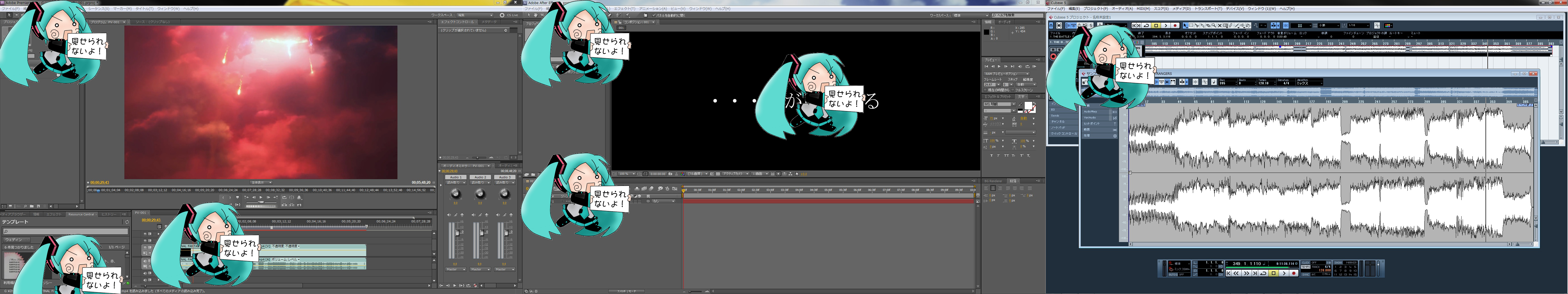 諸般の事情というか家庭の事情と言うか、 先日購入したデジカメが妹の毒牙にかかり連れ去られてしまいましたw なので当初予定していた模型製作が頓挫してまぁ他にやる事ないし(無くもないけどw) とりあえずということでww 画像は現在製作中の動画なんですが、素材としてとある動画と音楽を編集している最中です。 モニターが3枚になったのでかなり作業が効率よく出来るようになりました。 所々まだお見せできない部分があるので隠させて頂きましたww 頭の中で構図はほぼ完成しているので、必要な素材を集めて編集するだけになってます(*´ω`*) 一応あとで、メモ帳か何かに書き起こしはしておきます。 あ、あとTERAが基本プレイ無料になったらしいので気分転換に復帰しましたw ヴェリック鯖で「Lenge」もしくは「レヴァンティン」で遊んでます。 コントローラでのプレイも可能なのでもしオヒマな方一緒にどうですか~ヾ(´▽`〃)ノ まぁ私がどれだけIN出来るかはワカリマセンがww それでは、今年最後の動画製作頑張ってみたいと思います(。+・`ω・´)シャキィーン☆ PR CommentsComment Form |