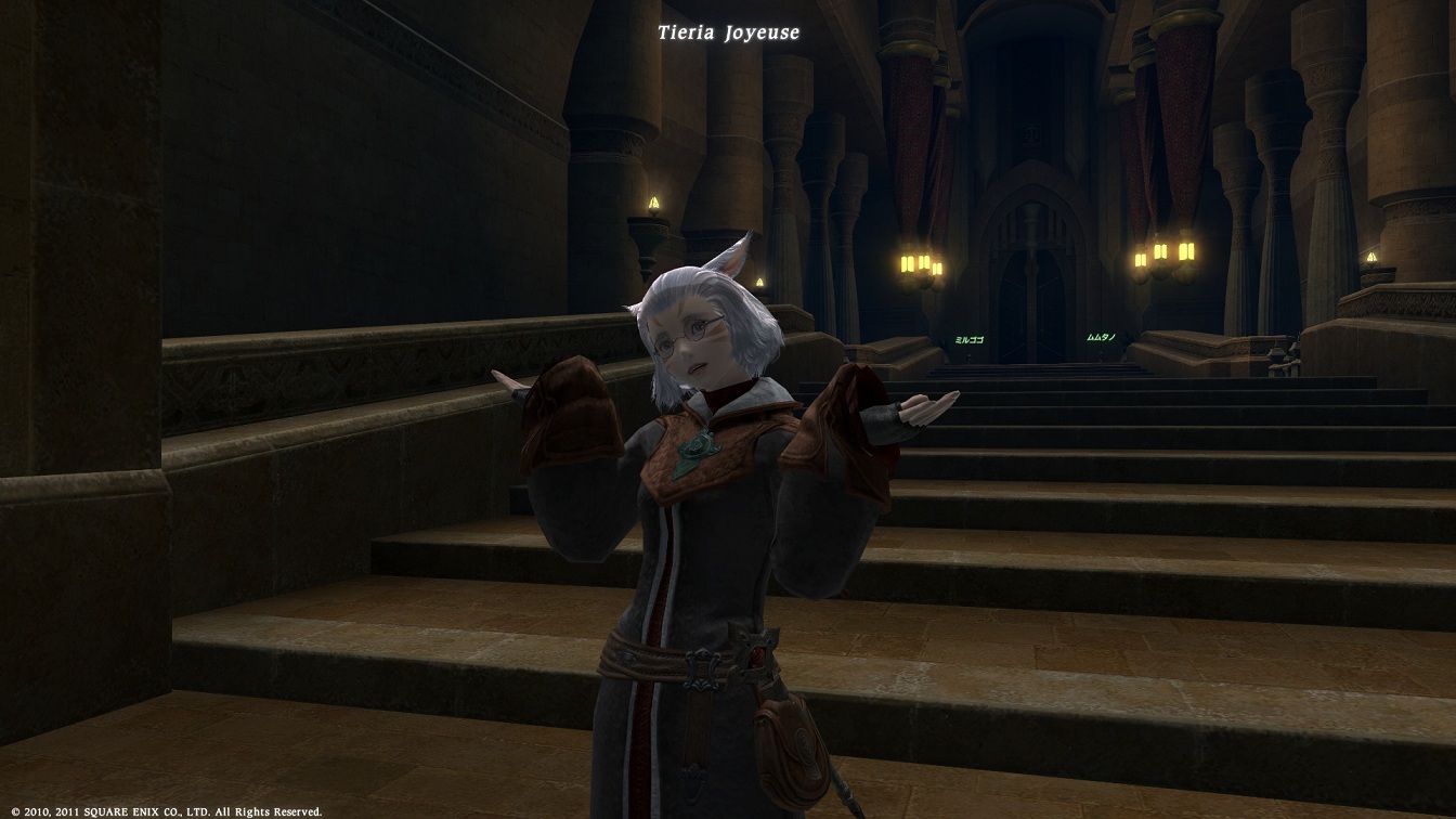 Tieria Joyeuseのご紹介。 名前の読みは、 『ティエリア ジュワイユーズ』と読みます。 この『Joyeuse』という名前実は実在説がある聖剣の名前なんです。 その名前の意味は『喜びにあふれた』という意味があるそうです。 まぁこの辺の事は調べれば分かりますので、興味を持たれた方は調べてみてはいかがでしょうか。 さて、話を戻しまして。 このティエリアさん、急遽代役として登場してくれた方ですww 本来ならばFillyさんにお願いしていたのですがご本人と私とで中々時間が合わず、 急遽無理やりお願いしてやっていただきましたw 動画内の設定としまして、女帝の補佐役・・・それ以外まだ決めてませんww 2011.04.09 Sat 01:49:20 第一話のAパートの撮影 |