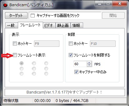 もしフレームレートを表示させたい場合は、