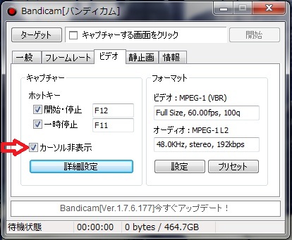 これを入れるとマウスカーソルが録画対象から外れます。