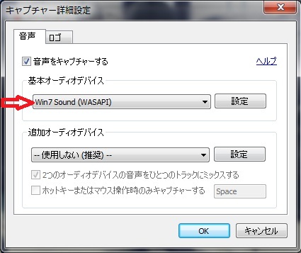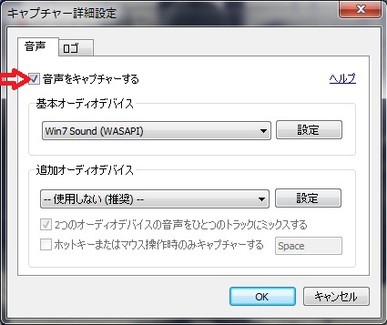 ここで音声も一緒にキャプチャーするかどうかを決めます。